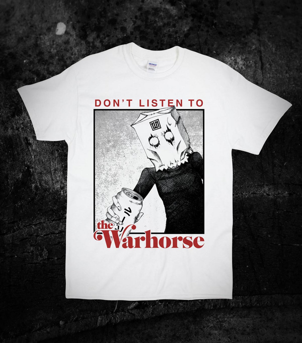 Become a walking PSA to warn your friends, family, co-workers, and burrito dealers about the dangers of consuming the audio recordings of The Warhorse.